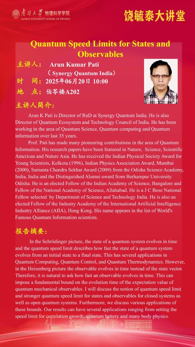 【饶毓泰大讲堂】 Quantum Speed Limits for States and Observables