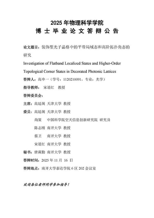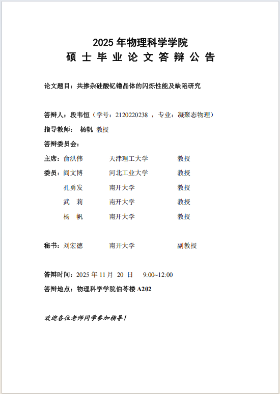 【毕业答辩】2025年秋季学期色中色 博士、硕士毕业论文答辩公告