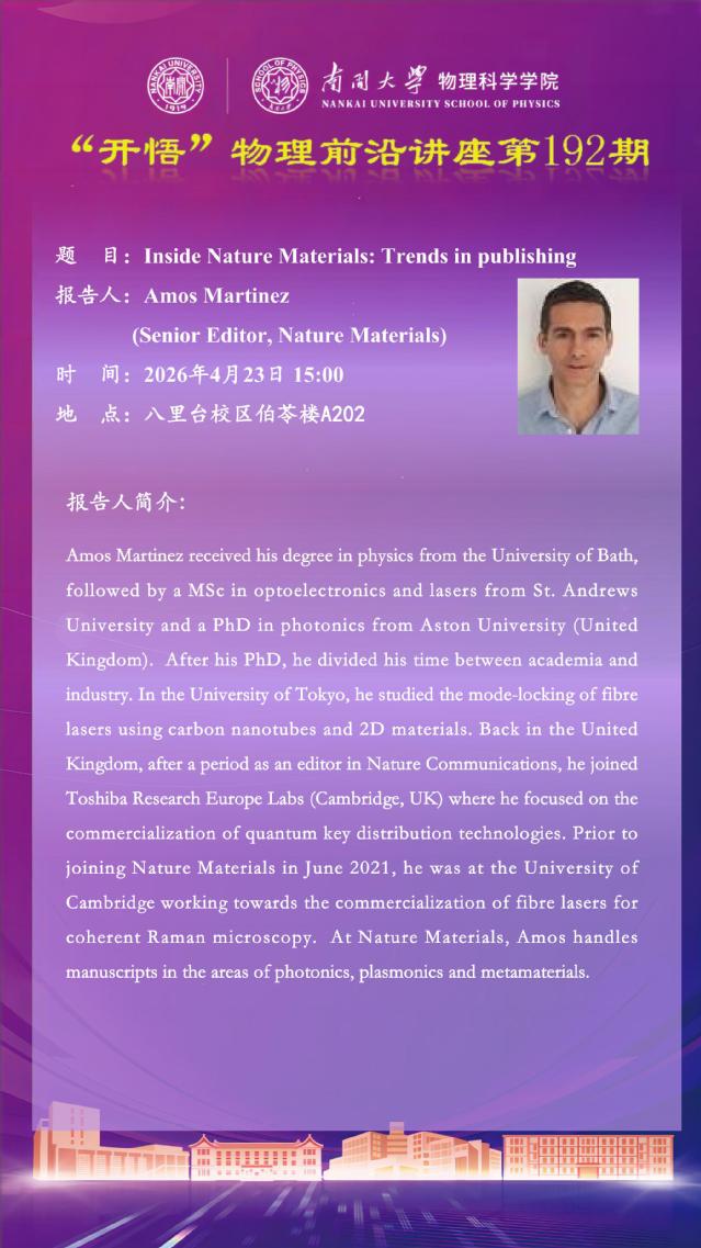 【“开悟” 物理前沿讲座 (第193期)】 Inside Nature Materials: Trends in publishing