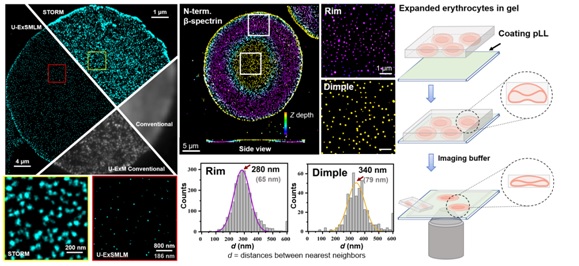 Pan Lab in Nankai University developed ultrastructure expansion single-molecule localization microscopy (U-ExSMLM) to reveal the cytoskeletal asymmetry in biconcave human erythrocytes at molecular resolution