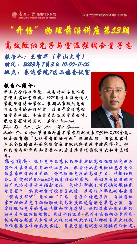 Kaiwu Lecture 53: Efficient micro-nano photons and room temperature strongly coupled quantum states
