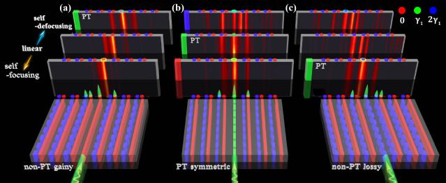 非厄密光学:它允许光学系统存在非互易性、增益与损耗等特性,可以实现新颖的物理现象,如光学异常点、趋肤效应等。同时为开发具有独特功能的光学器件,如单向光开关、超灵敏传感器等,提供了有力的理论支撑和实验平台。在该领域,我们在国际上首次构建了非线性非厄密拓扑结构。
